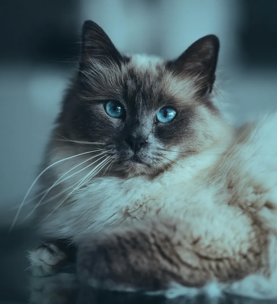 The sacred Burmese is a beautiful breed that immediately catches the eye with its silky coat and deep blue eyes. Originally from Asia, the Burmese is characterized by its graceful appearance and friendly character. It is one of the most popular cat breeds and is particularly suitable as a family pet or cuddly toy.
